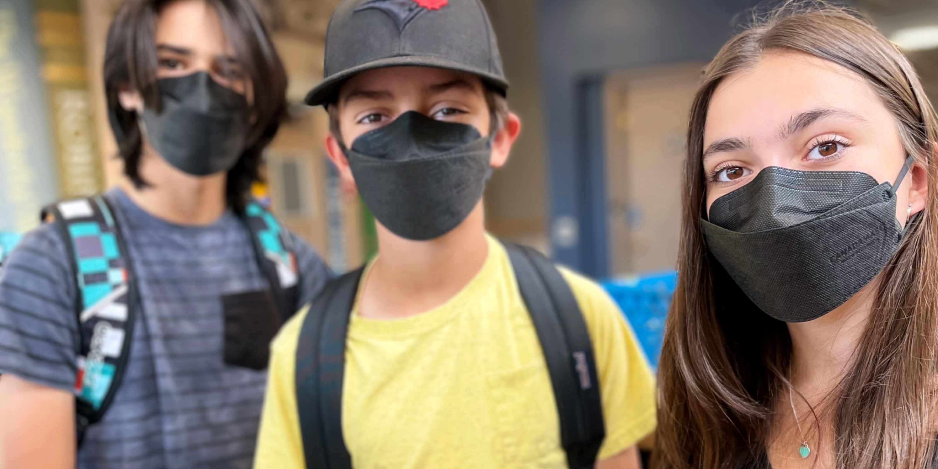 Vitacore CAN99e Children's (kids) earloop respirator at Canada Strong MasksChild wearing black Vitacore CAN99e Canadian kids respirator mask made in Canada